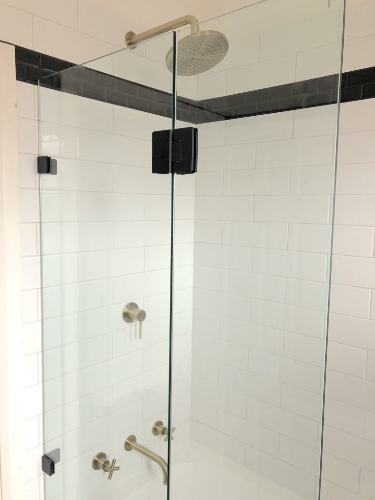 A classic modern style bathroom renovation. This was a small bathroom with a big dramatic impact.